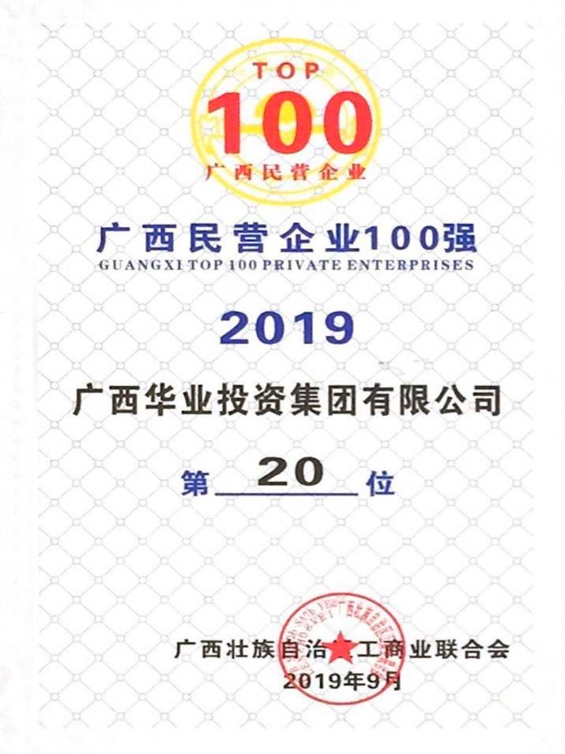 2019年廣西民營企業100強榜第20名
